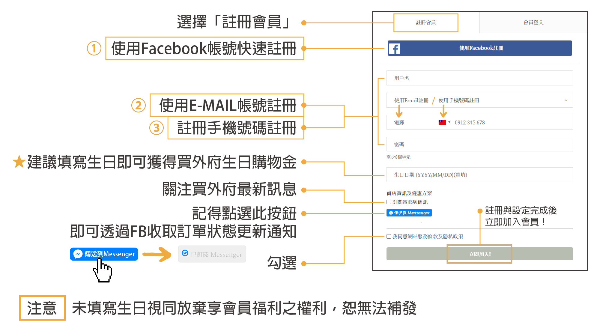 新註冊會員可透過三種方式加入